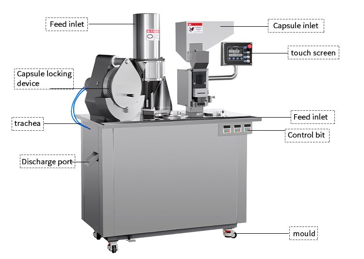 The machine is adopted programmable control system, touch panel operation, steplesstransduction speed shift,and electronic automatic counter. It can automatically completetheaction of position,separation, filling, locking,etc. The filling dosage is accurate,and theoperationis very convenient.The overall machine is made of good quality stainless steel,and themachineissuitable for capsules which filled with powder and pellet.