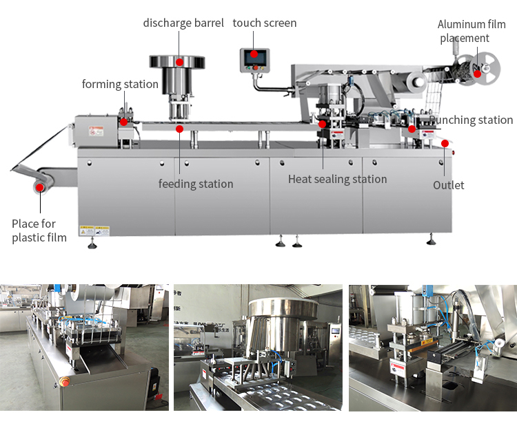 The high-speed blister packaging machine is suitable for automatic blister packaging of regular medicines. such as capsule tablets and chewing gum, lozenges, chocolate beans and other confectionery. It adopts flat pressure forming, drum type mesh sealing, which is reliable in sealing. lt can print batch number and press easy tearing line.This machine is designed to pack without packaging material waste ,which is saving money.